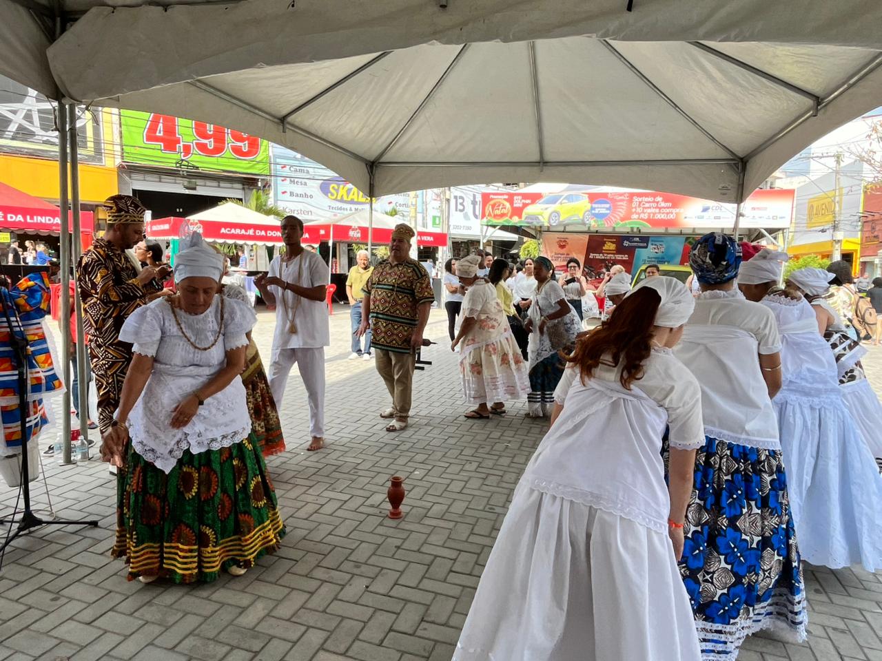 A programação teve início com uma saudação das religiões de matriz africana, dedicada a Exú, como forma de abrir caminhos, afastar energias negativas e trazer proteção. Ao longo da tarde, os grupos também realizaram homenagens a outros orixás. Para o líder religioso pai Léo de Otin, ocupar esse espaço representa uma conquista coletiva. “Estarmos aqui é uma forma de superar o preconceito e o racismo, tanto cultural quanto religioso. No passado, uma simples roda de capoeira poderia ser interrompida com violência. Hoje, ver nossa cultura sendo celebrada em praça pública mostra o quanto avançamos”, afirmou.